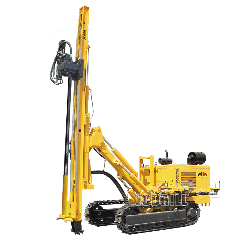 JC980 hydraulic crawler drilling rig is widely used for blast-hole drilling in the mines and quarries.JC980 rock blasting drilling machine is also used for anchor in road, railway, power station, civil engineering and building etc.