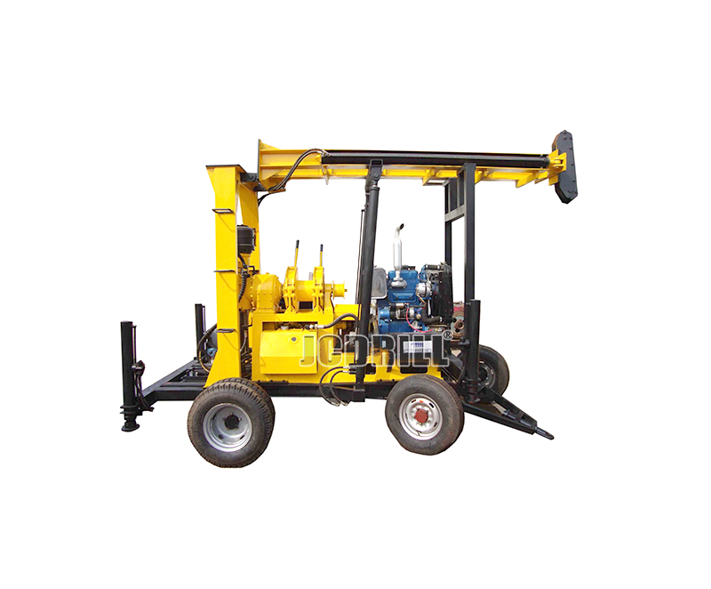 >> The JXY200 trailer mounted water well drilling rig is equipped with wheel running gear and hydraulic oil cylinder pillar, transferring, convenient and easy to drill horizontal adjustment.